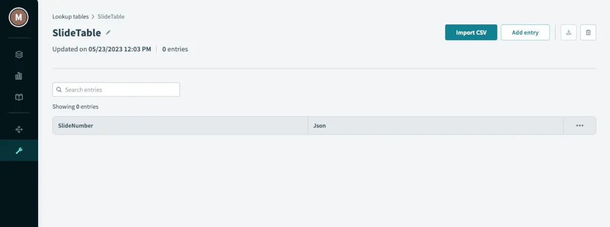 作成したLookupTableを選択し、SlideNumber欄は対応する数字を入力(例:100)