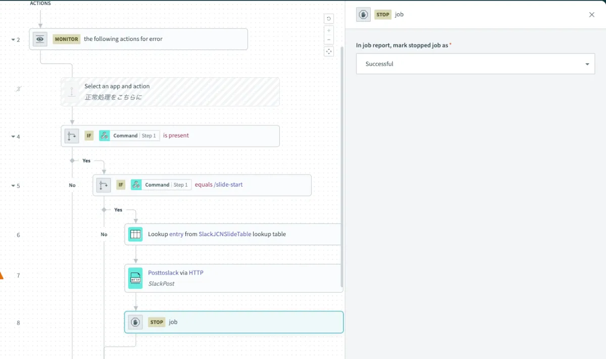 In job report, mark stopped job as* はSuccessful で設定