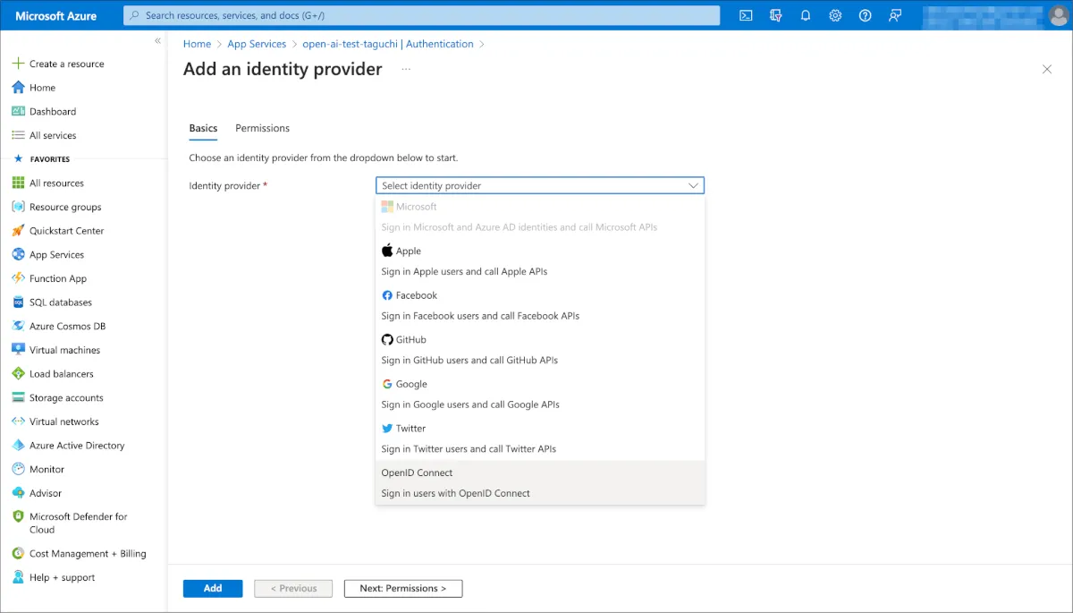 - Azure OpenAI Service、Azure Web Appsを操作する権限が割当たっている事。