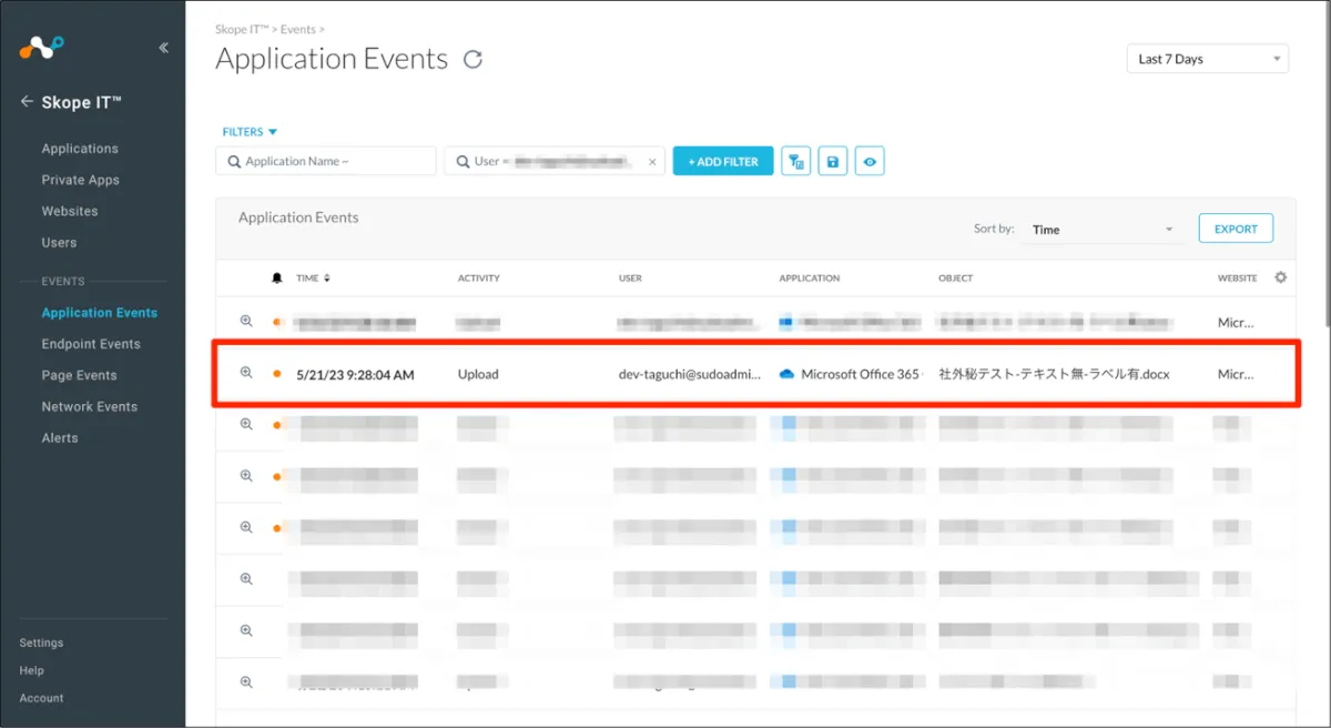 今回はラベルのついたファイルをOneDriveにアップロードしてみましたが、ファイルアップロードがブロックされ、Netskopeでアラートが上がったことを確認できました。
