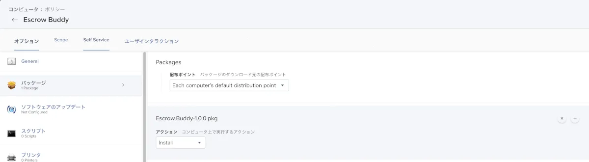 - pkgファイルのダウンロードページよりEscrow.Buddy-x.x.x.pkgをダウンロードし、Jamf Proにアップロードします。
