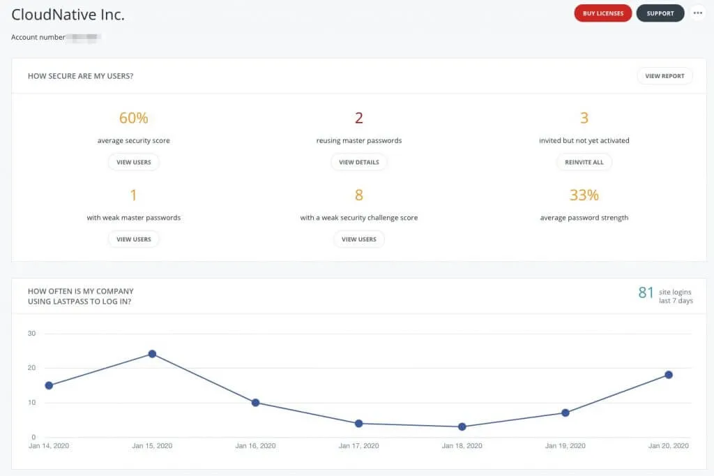 LastPassはパスワード管理ツールです。個人でフリーで利用することも出来ますが、エンタープライズではSSOできたりIdPとアカウント連携できたり複数人でログイン情報を共有したり、利用状況をレポーティングしたりと機能が充実しています。