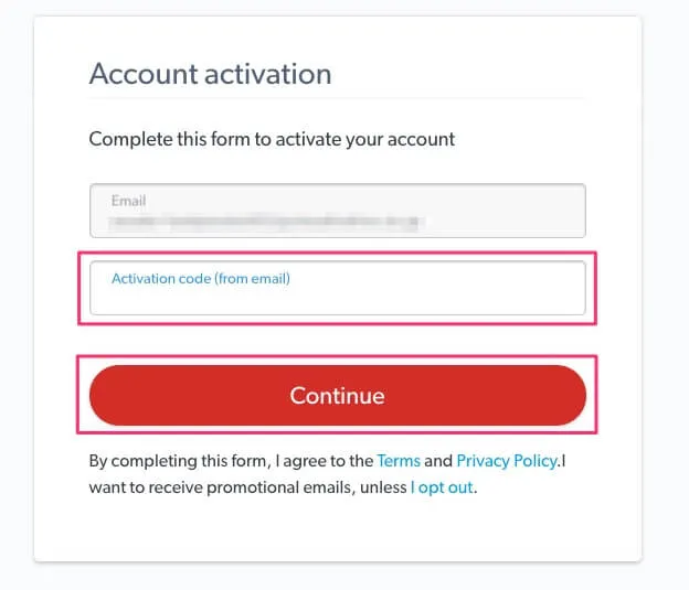 開いたらActivation codeを入力してContinueします。