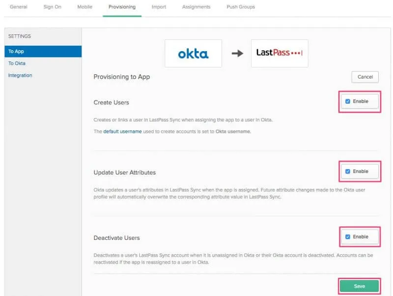 LastPassをOktaと連携させるための条件は下記のとおりです。