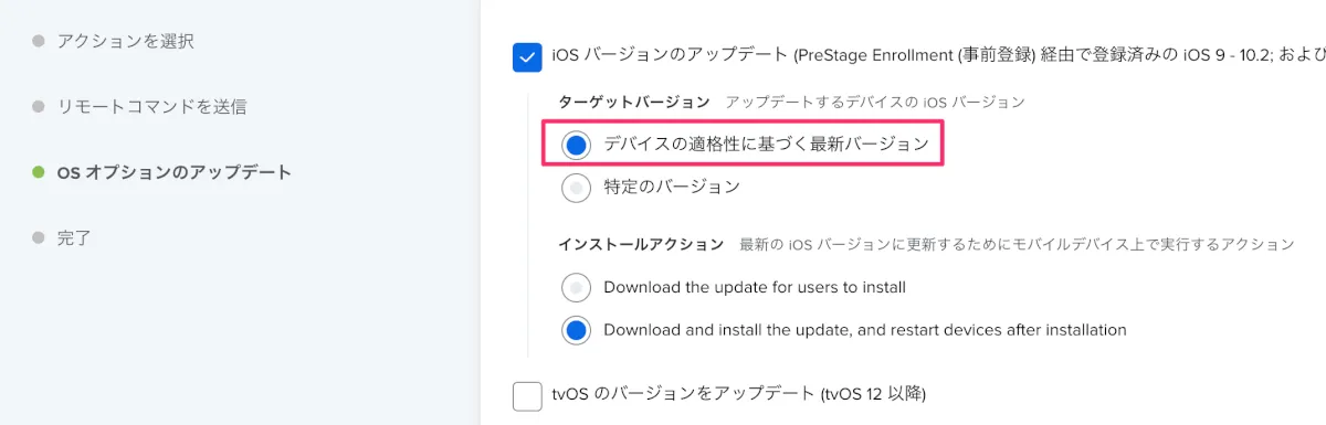MDMから「デバイスの適格性に基づく最新バージョン」を指定した配信