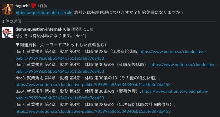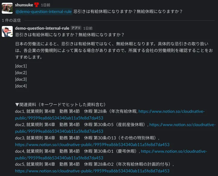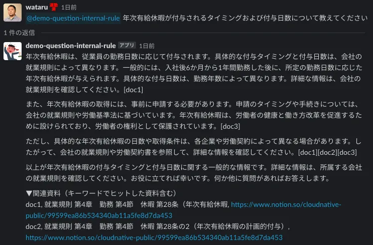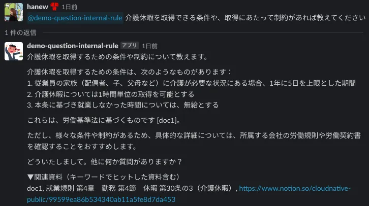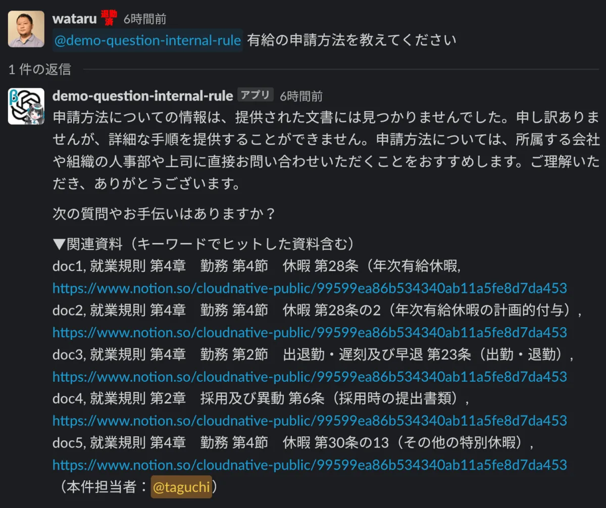 - ユーザーが就業規則について質問をする
