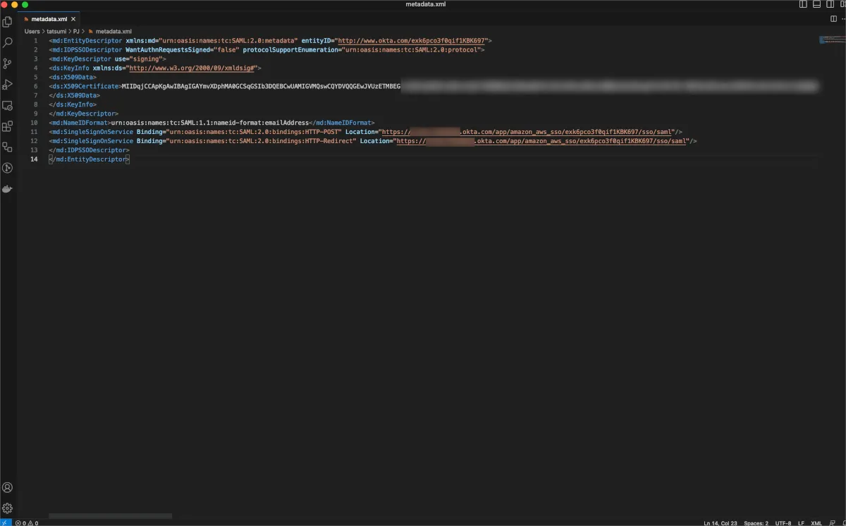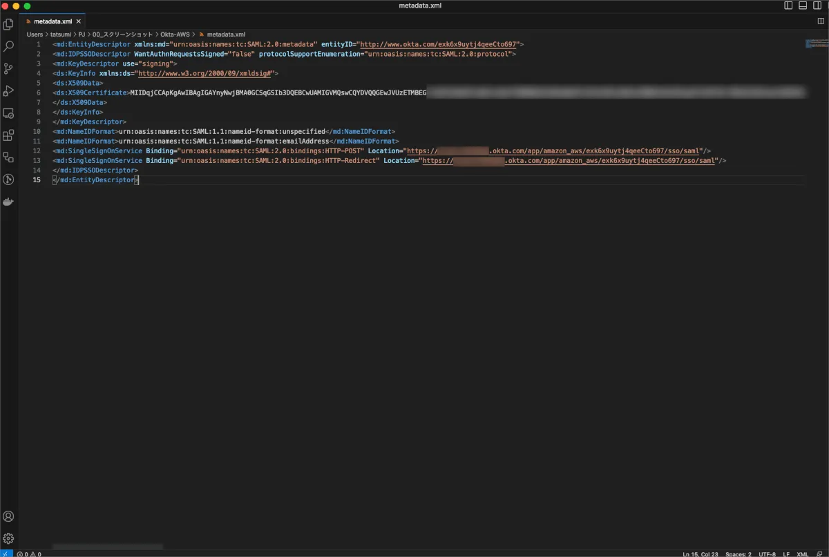 - 手順にあるMetadata DocumentのURLをブラウザで開きます。