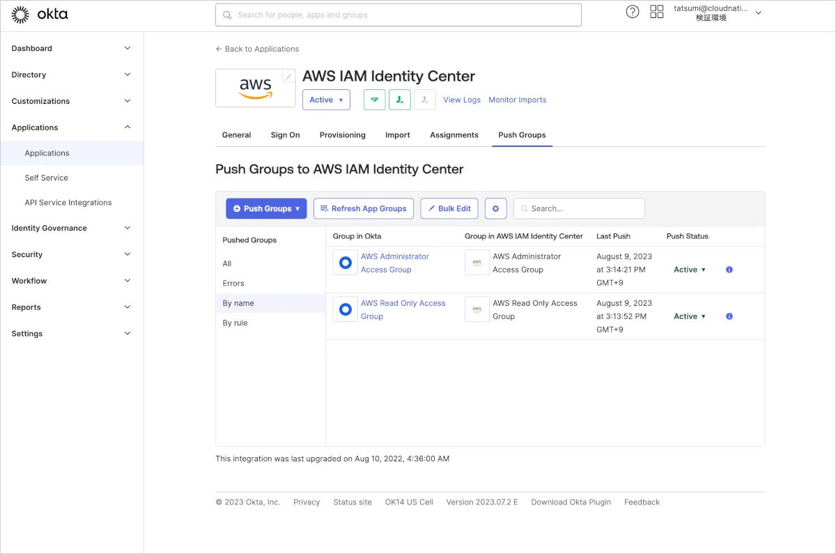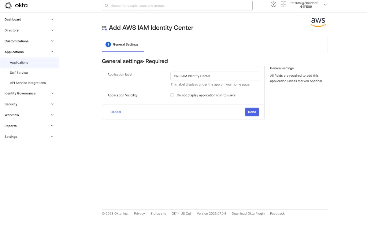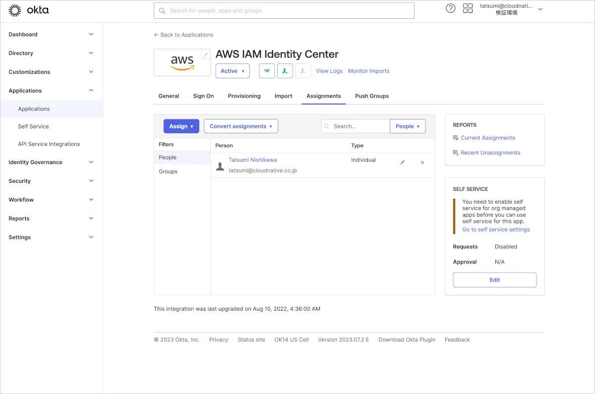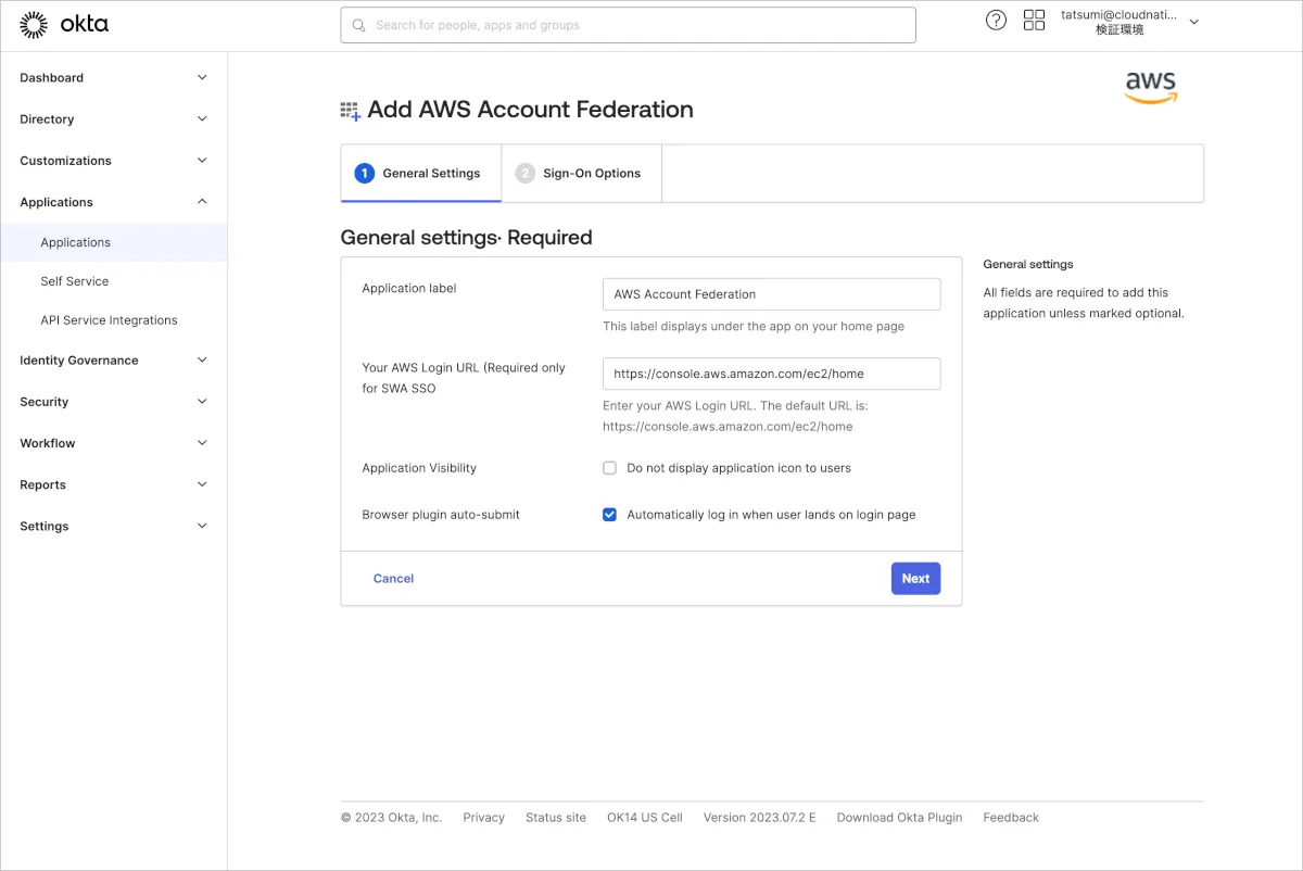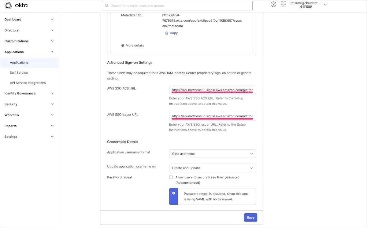 - Okta管理画面のAWS Account Federationアプリの画面に戻ります。