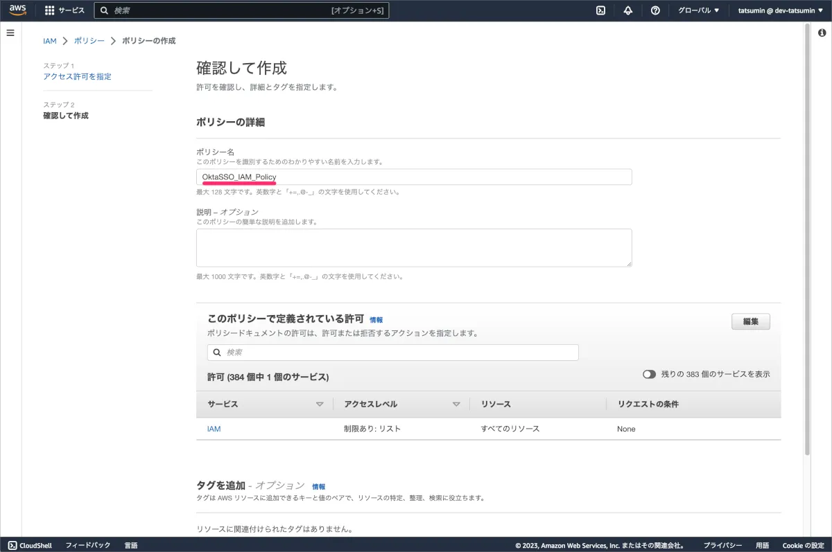 - ポリシー名を入力し、ポリシーの作成をクリックします。