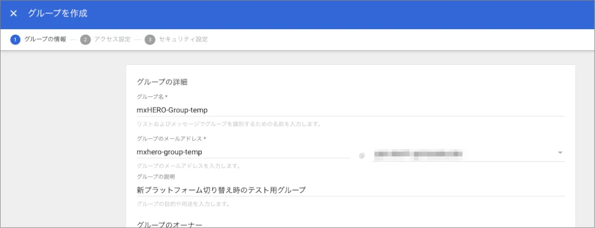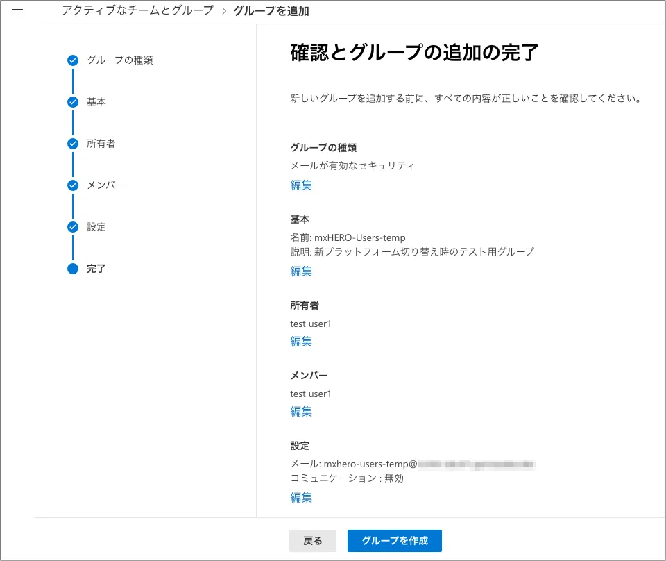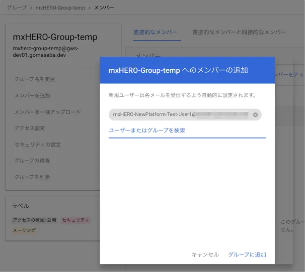 - テスト用のグループをメールシステム側で作成する