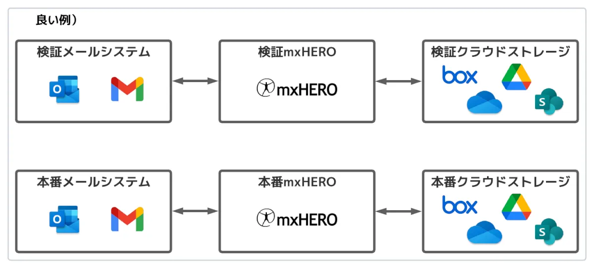 - 主にアカウント情報やストレージ設定、ルールが対象となりますが、その他のmxHEROで行っている処理に必要な設定を移行してください