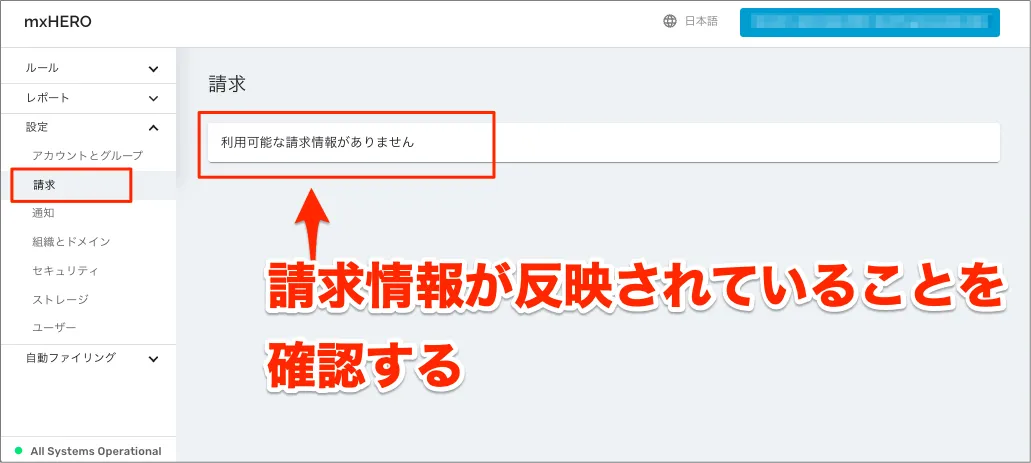 - 新プラットフォームmxHEROテナントの請求情報が反映されていることを確認する