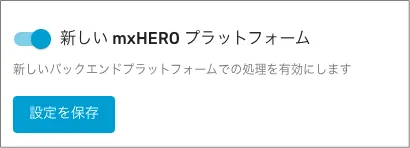 - 「新しいmxHEROプラットフォーム」トグルをオンに変更して、設定を保存する