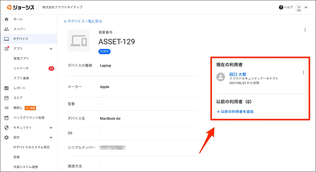 もちろんジョーシスストア経由で購入したデバイスは自動的にITデバイス台帳に追加されるので、登録漏れなどを防げます。