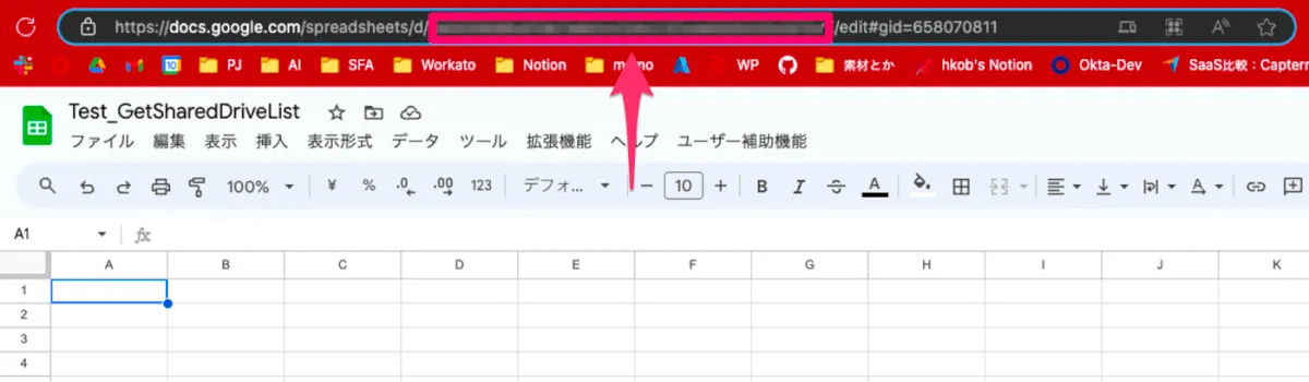- スプレッドシートのURLから、d/