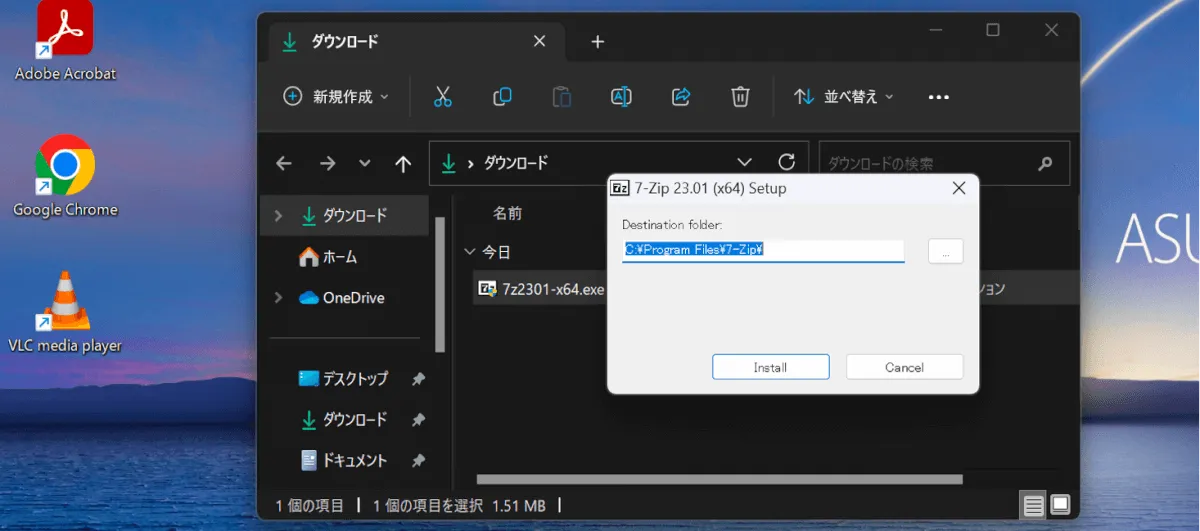 ② 次にローカル管理者権限が必要な操作を実施します。(今回はアプリインストールの例)