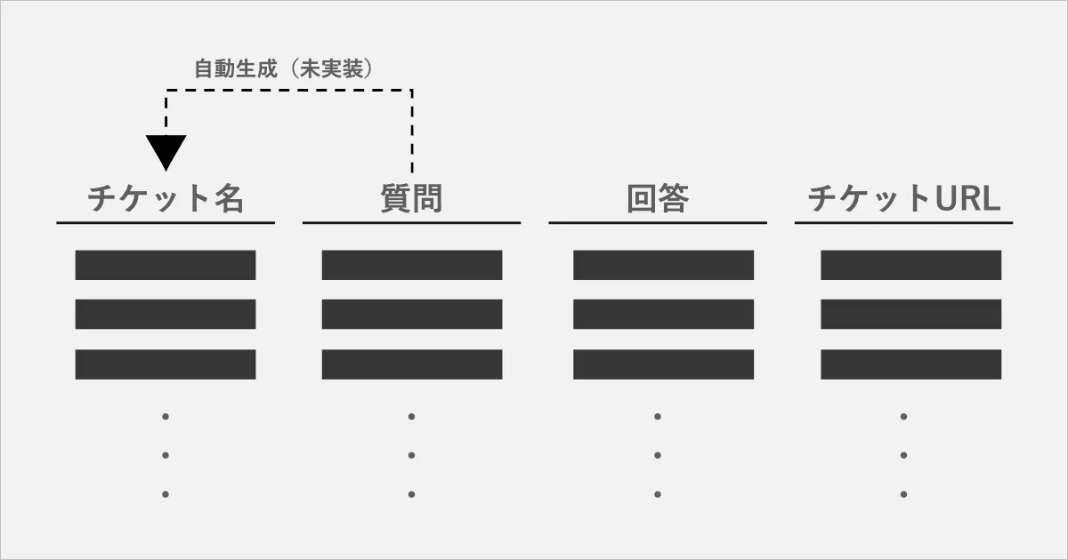 辛かった点としては、「チケット名」「質問」「チケットURL」に関しては3000件の構造化されたデータセットとしてチケット管理システム(Asana)上に存在していたのですが、「回答」に関してはSlack上に点在している状況だったことです。そのため、僕が夜な夜な手作業で集めてきましたw(はい、アナログ野郎と呼んでください。)といっても、早くリリースしたかったので、大半の「回答」はブランクのままリリースしており、日々更新を続けています・・・