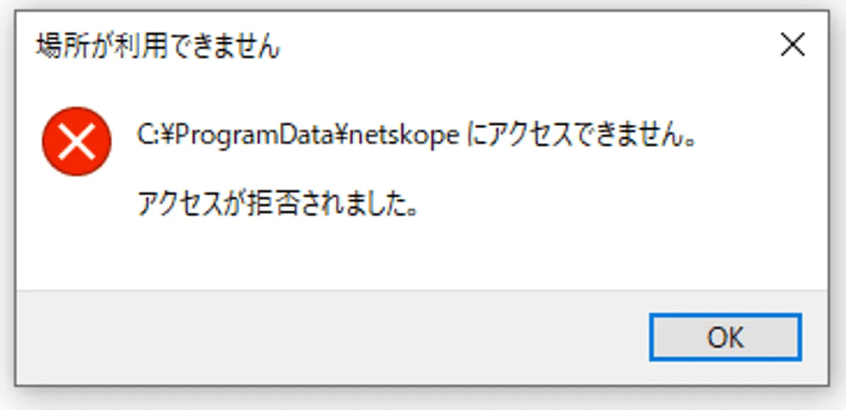 例えば、C:¥ProgramData¥netskopeフォルダへのアクセスも以下のように不可になります。