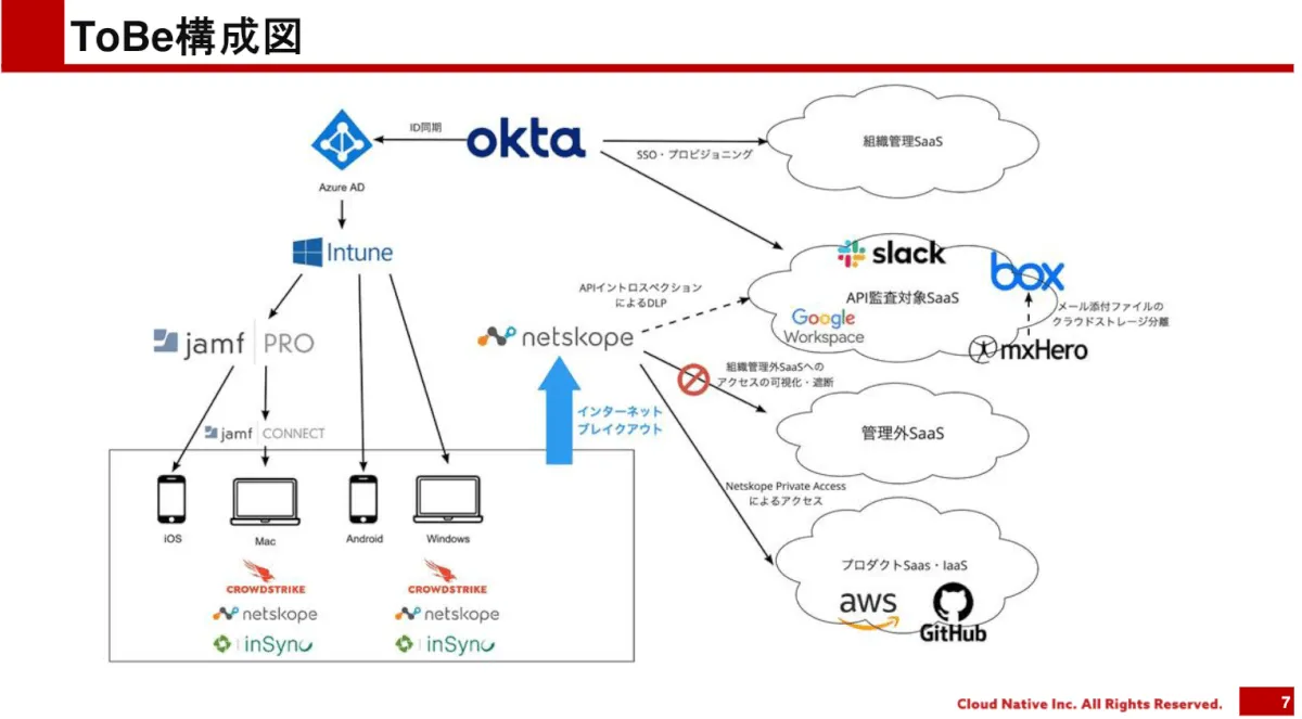 以下、As-Is調査や情報流通経路の整理結果を元に設計したToBe構成図です。この図に至るまでは、クラウドネイティブの各チームエンジニアが議論をし様々な構成を練って作成しています。