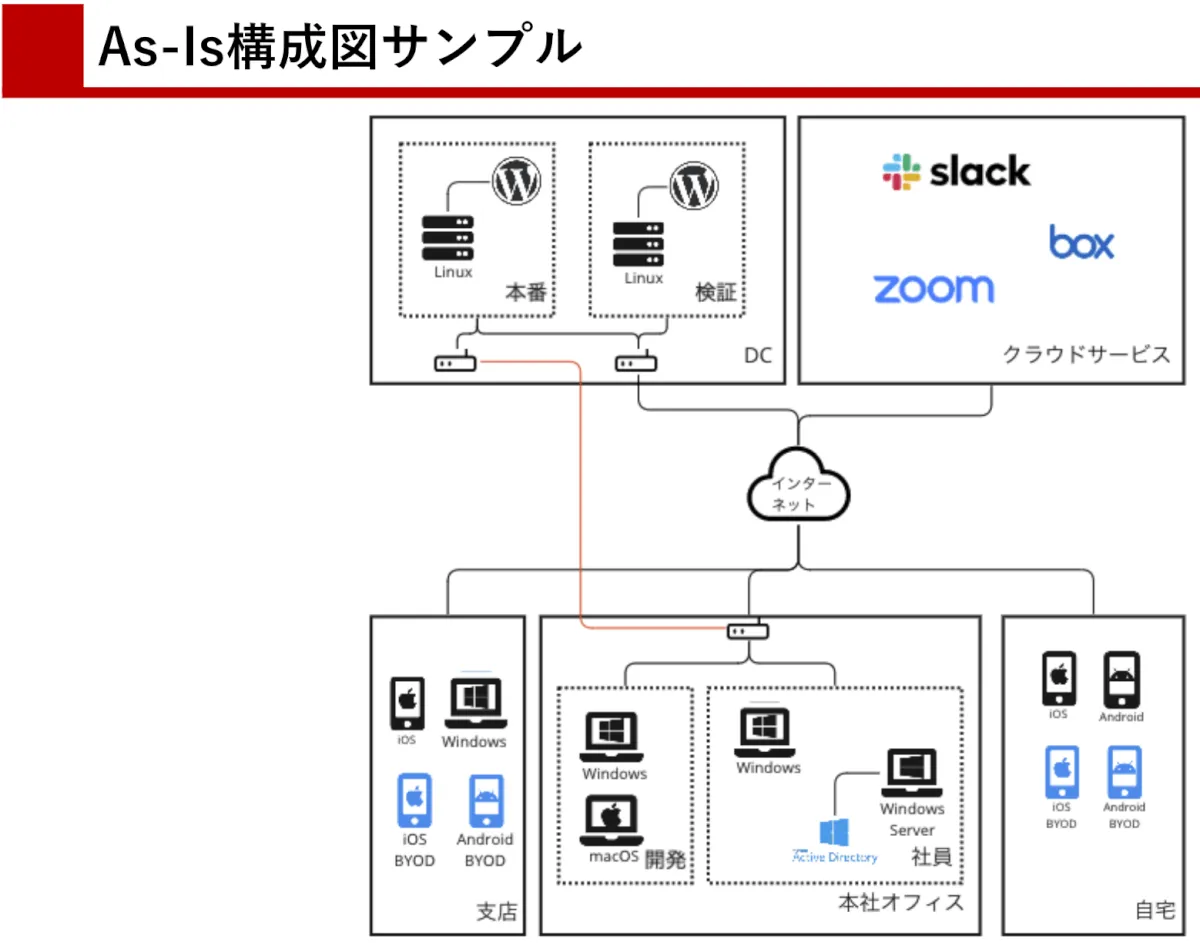 - BYODの有無、オンプレ資産(NAS、Active Directory等)
