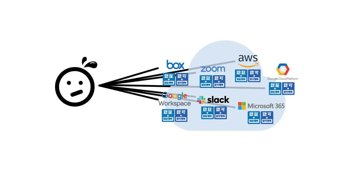 IDの発行や停止・削除という観点では、IT管理者はユーザーが利用するSaaS毎にアカウントを発行し、IDとPasswordをユーザーに伝える必要があります。同様に退職者のアカウント停止・削除もSaaS毎となるため入退社が重なる時期にはその作業だけでかなりの工数を割くことがあります。