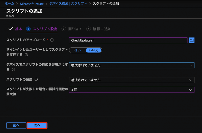 ブログ執筆中に、デバイスでスクリプトの通知を非表示にする、スクリプトの頻度、スクリプトが失敗した場合の再試行回数の最大値の3つの機能が追加拡張されて驚きました。 まだまだJamfProほどのきめ細やかさはないですが、今後の機能拡張次第では、Intuneでmacデバイスを管理する選択も考えるきっかけになりそうです。