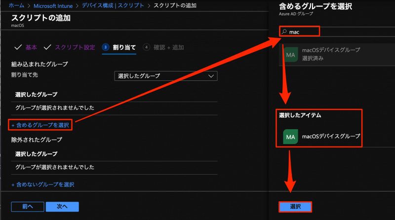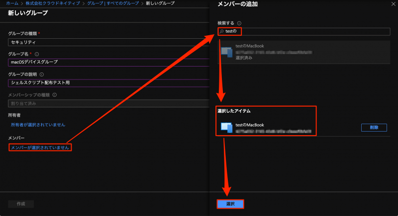 - 2.で作成したデバイスグループを検索し、選択をします。