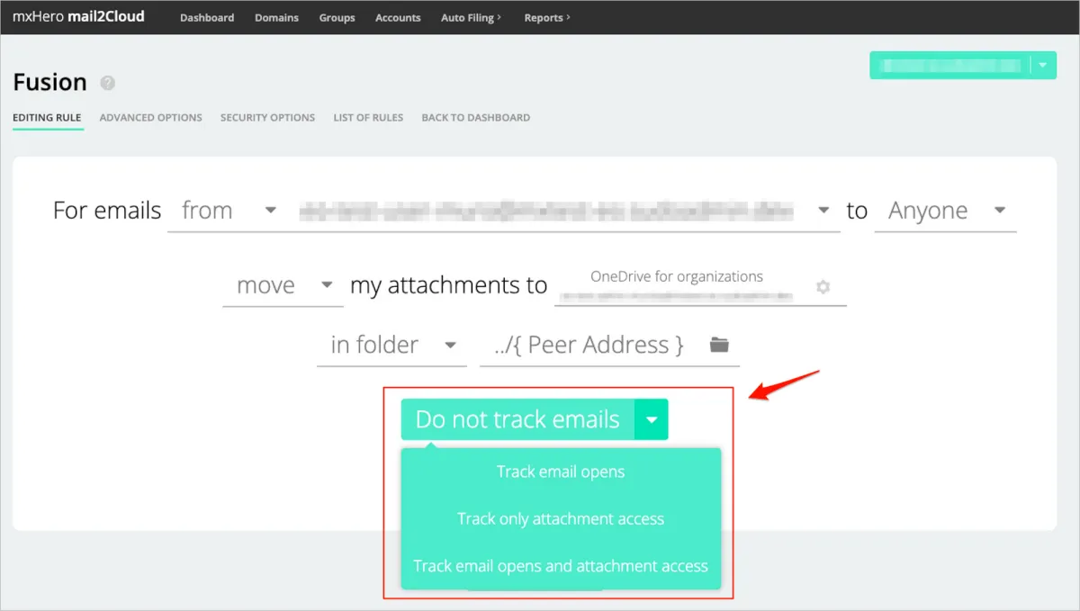 なお、受信メール向けのルールには該当オプション項目は非表示となり、メールトラッキング機能は適用されません。