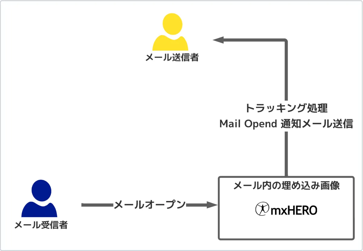 - mxHEROが送信メールに「https://services.mxhero.com/track/image/xxxxxxxx.png」のようなmxHEROサービス内の画像を埋め込んで送信します。