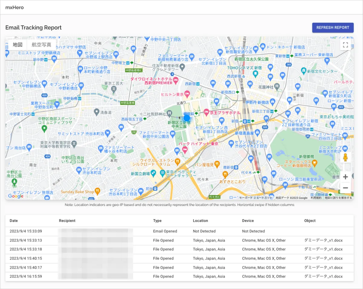 - 「OPEN TRACKING REPORT」では生のグローバルIPは表示されない