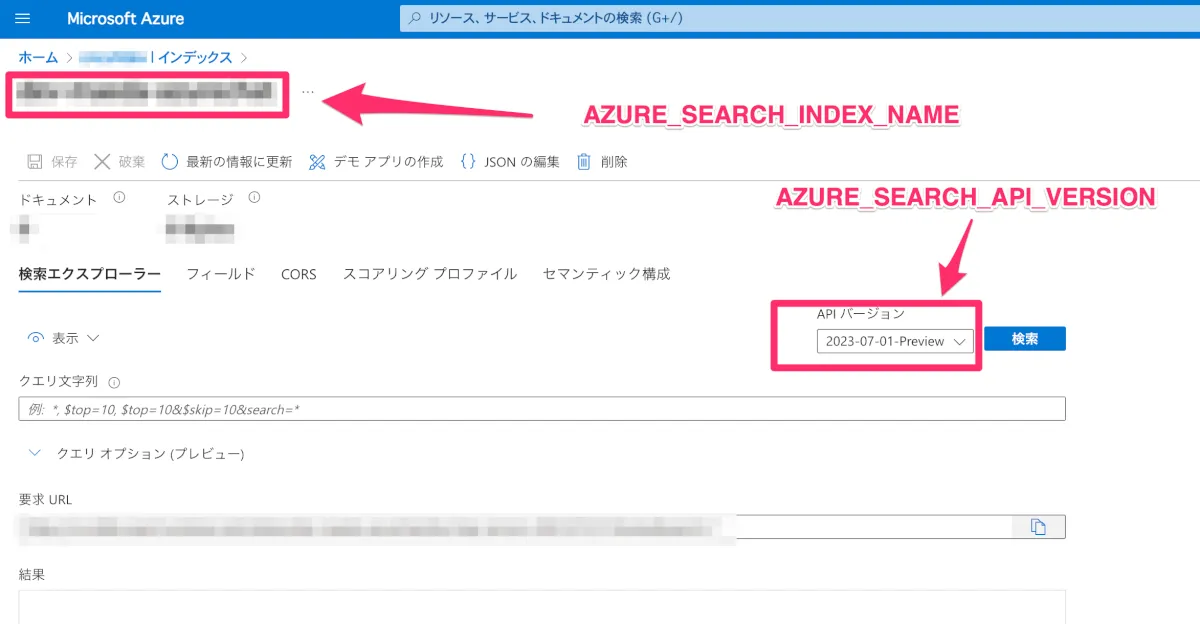 AZURE_SEARCH_API_KEYAZURE_SEARCH_NAMEAZURE_SEARCH_INDEX_NAMEAZURE_SEARCH_API_VERSIONの取得 - Document Intelligenceの作成し、