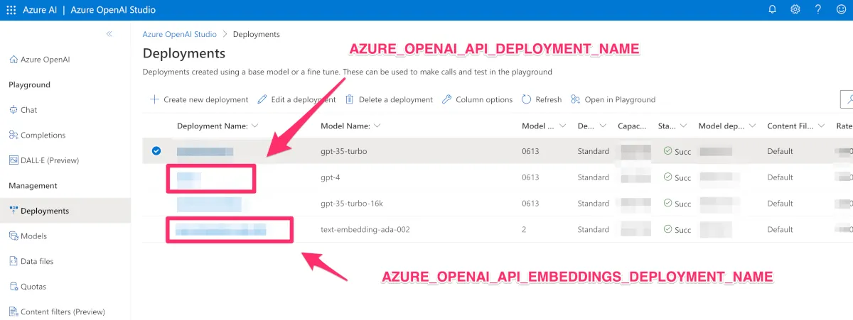 Azure ChatGPTからAZURE_OPENAI_API_EMBEDDINGS_DEPLOYMENT_NAME が追加されているので注意してください。