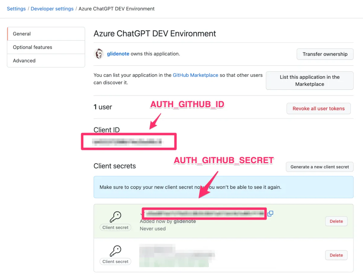 AZURE_DOCUMENT_INTELLIGENCE_ENDPOINTAZURE_DOCUMENT_INTELLIGENCE_KEYの取得 - GitHub OAuth Apps のセットアップし、