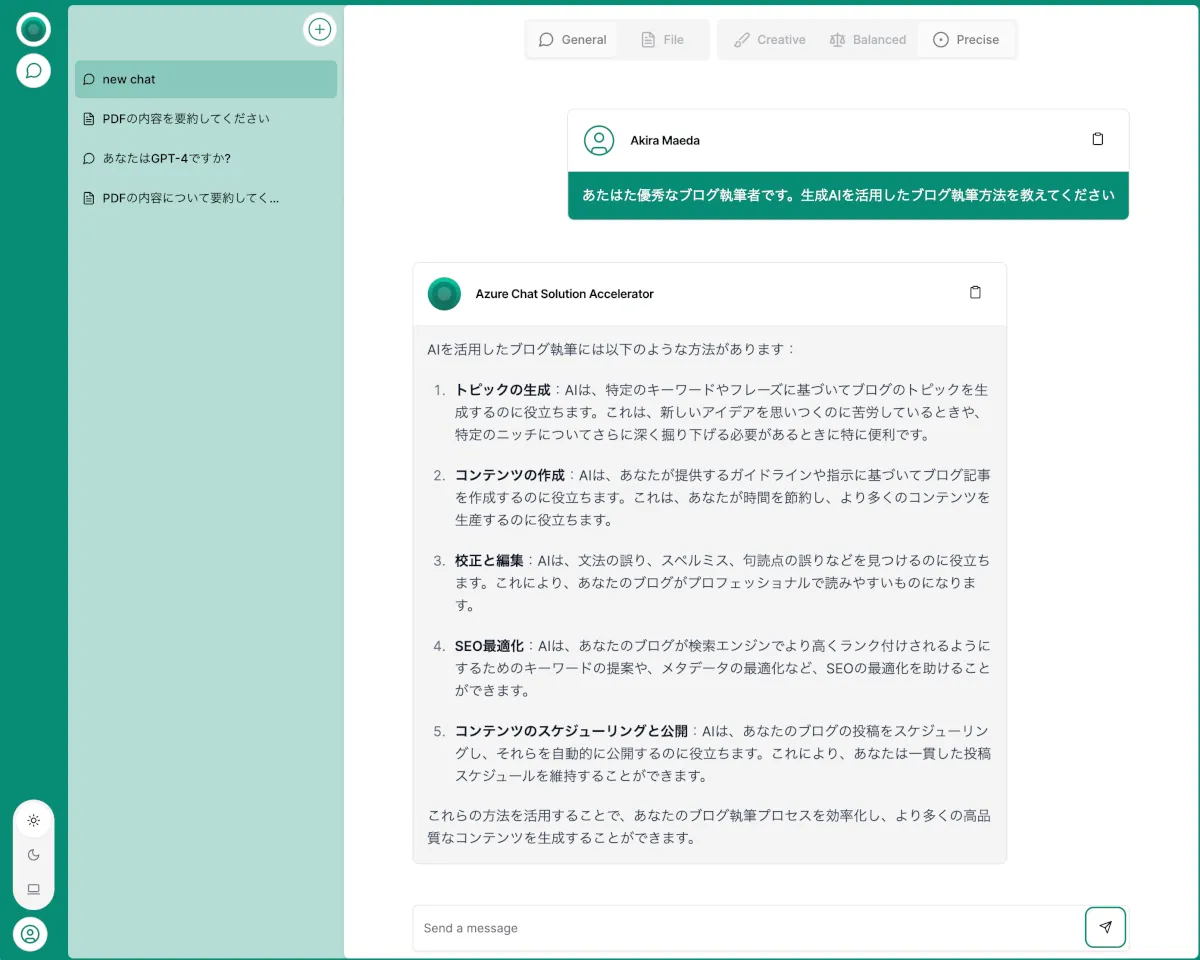 - Microsoft製のAzure OpenAIを利用したエンタープライズ向けのAIチャットです