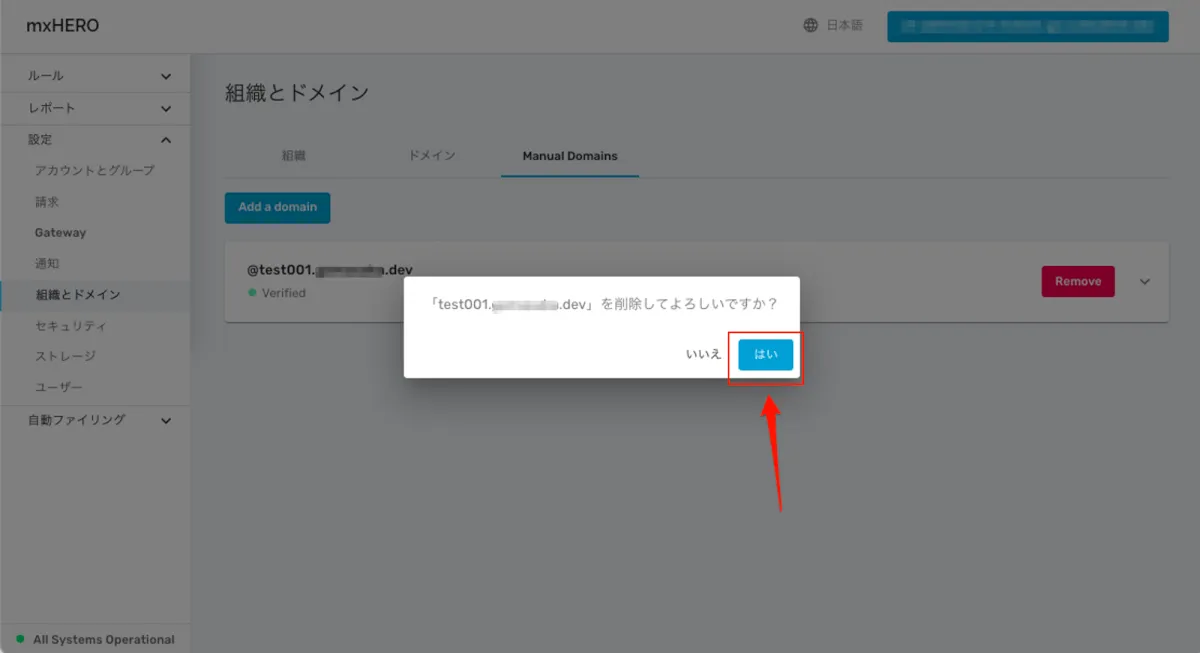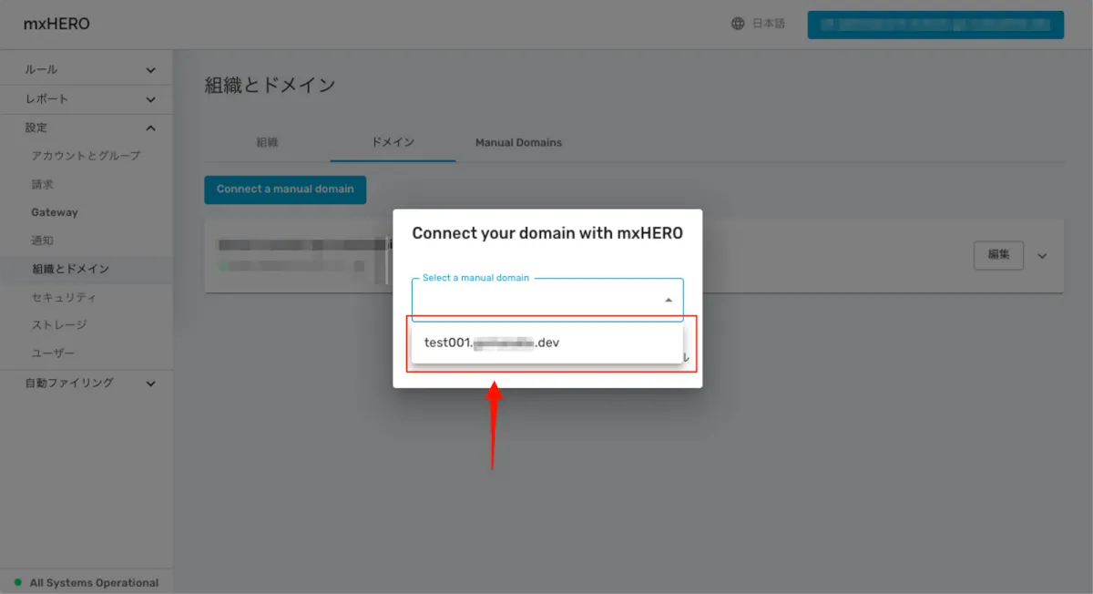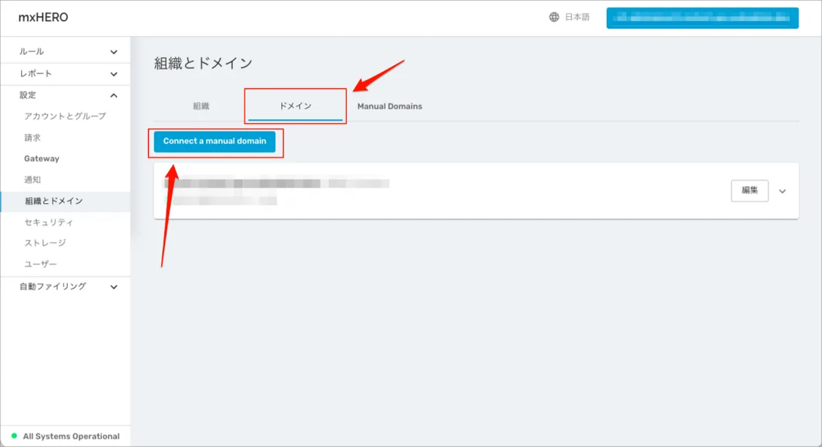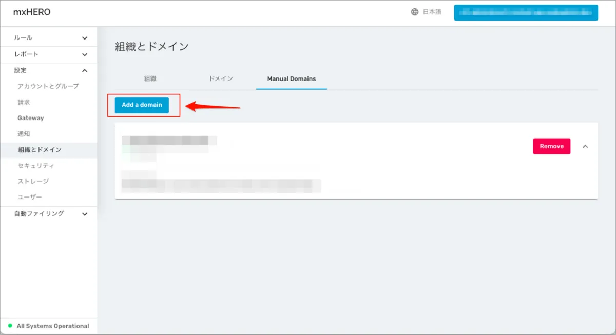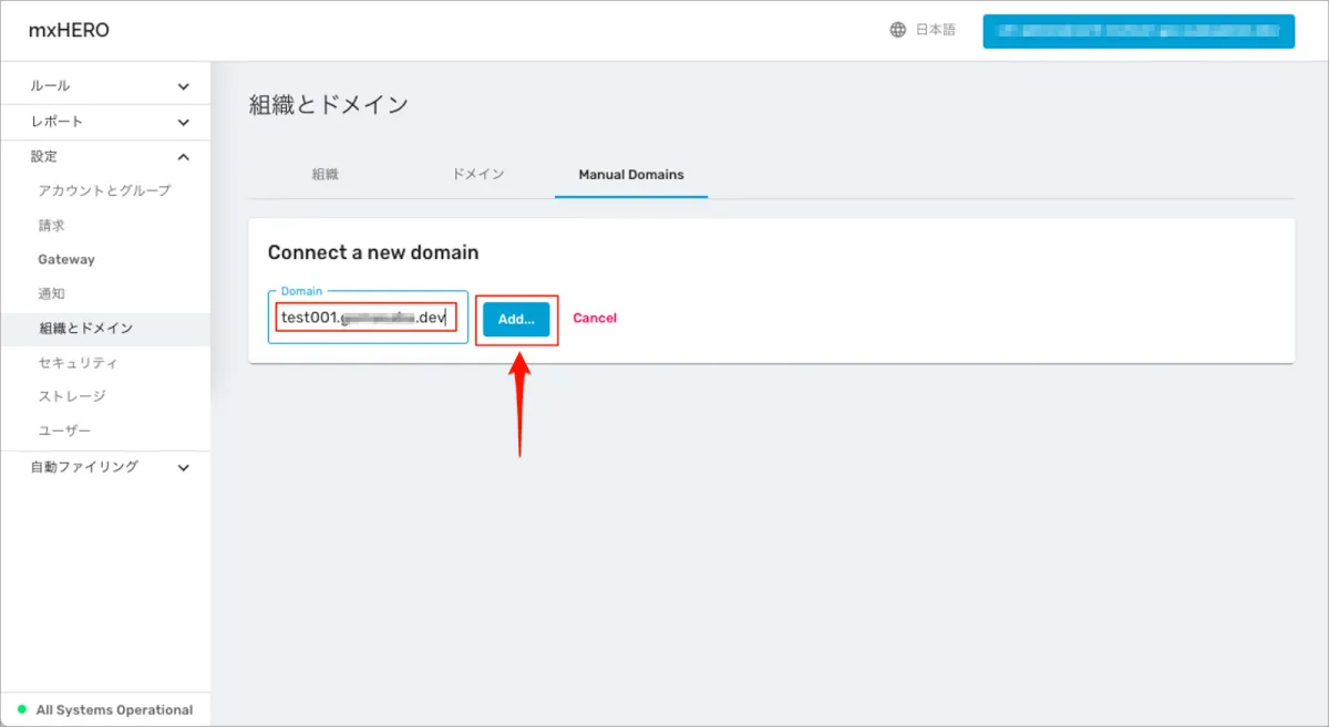 手順1)mxHEROへ手動でドメインを登録する