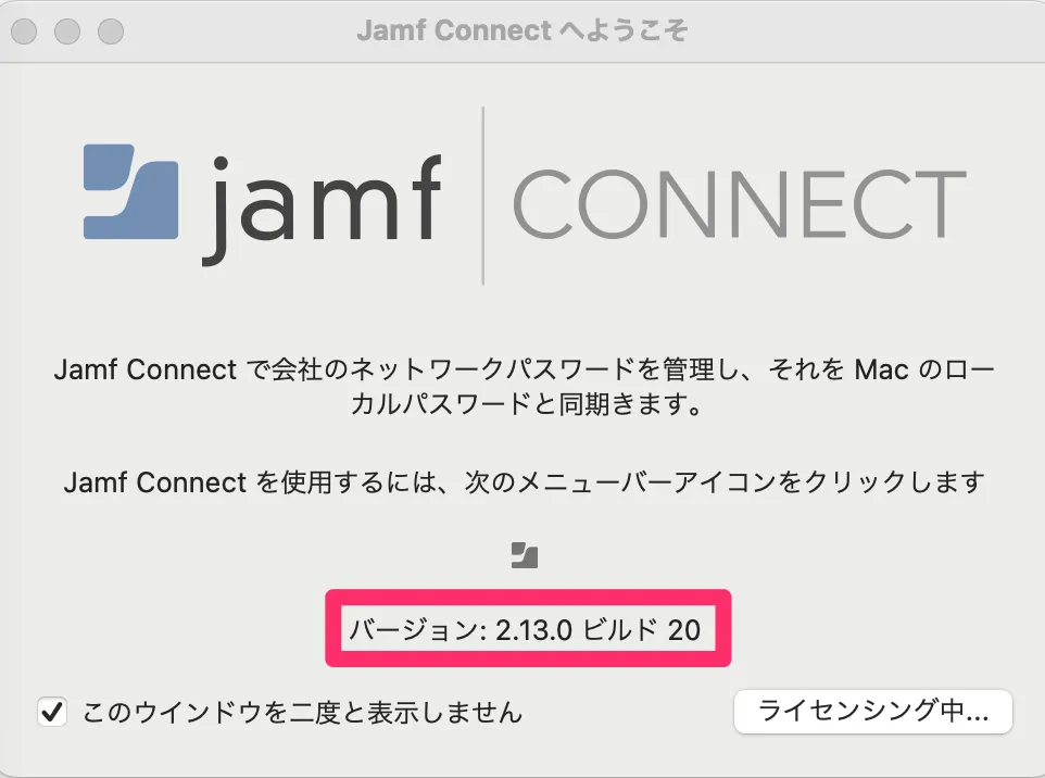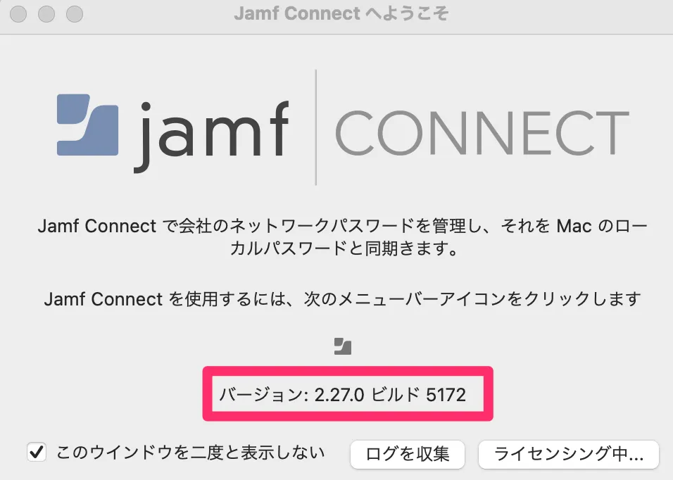 ▼Jamf Connectバージョンの確認方法