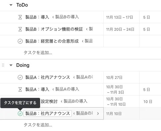 - 期限で表示サイズが変わるため、短期間のタスクは選択しづらいことがある。