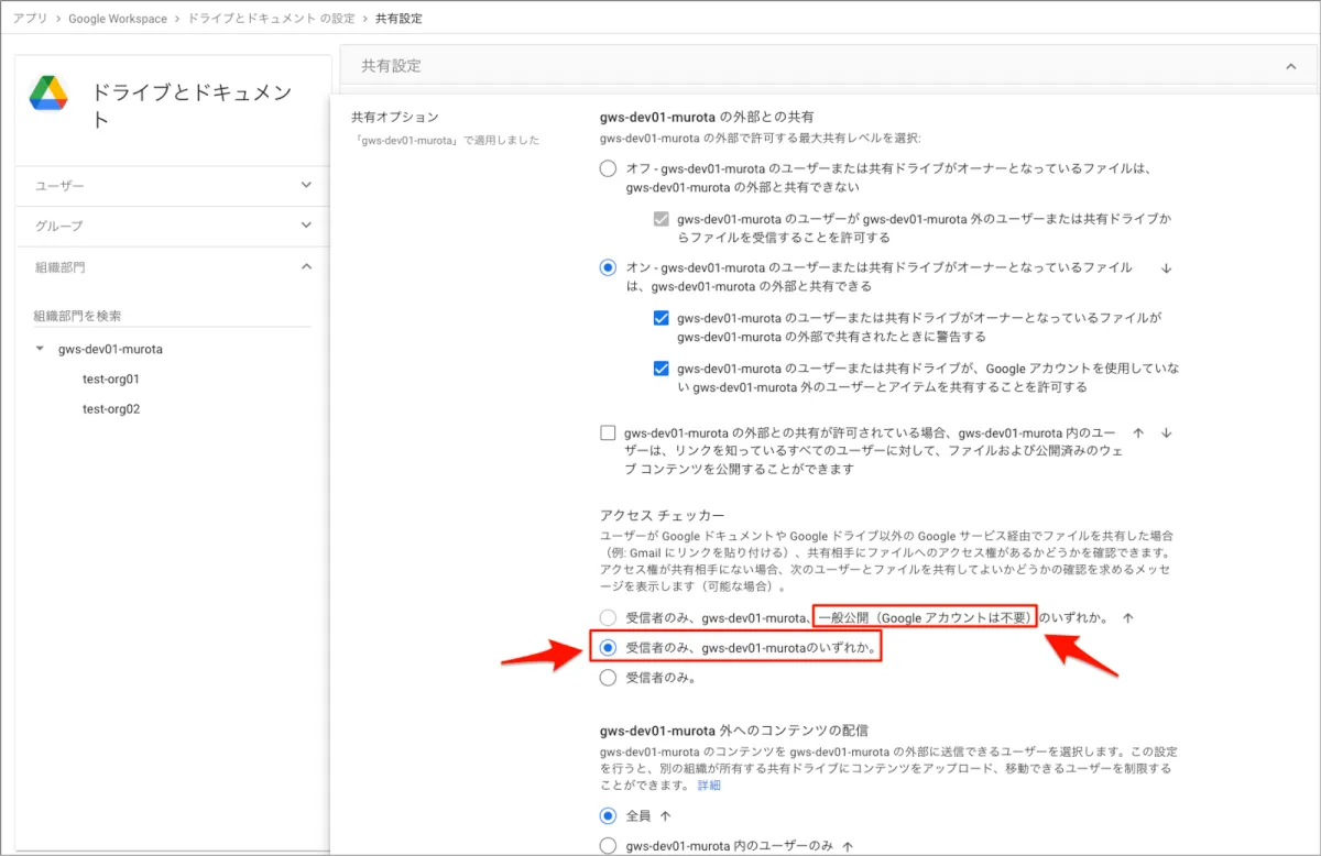 なお、「対応方法1」で記載したようにGoogle Workspace上の「組織」を分けて制限設定を回避した共有ドライブ上で一般公開の共有リンクを利用することは可能です。
