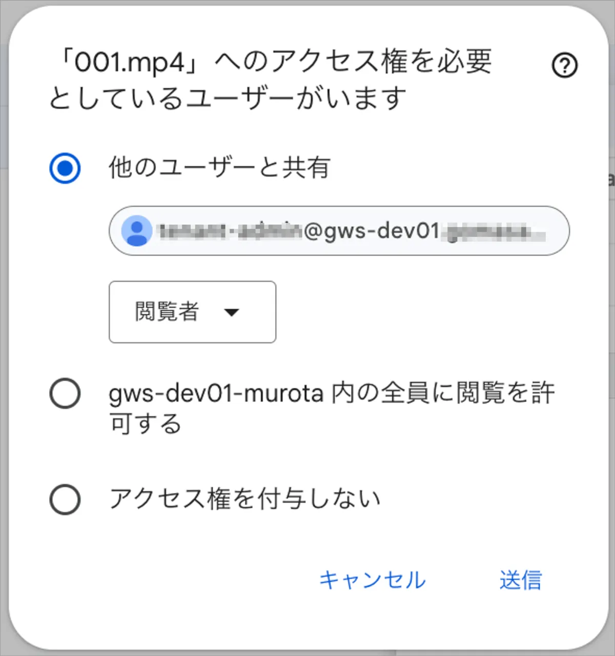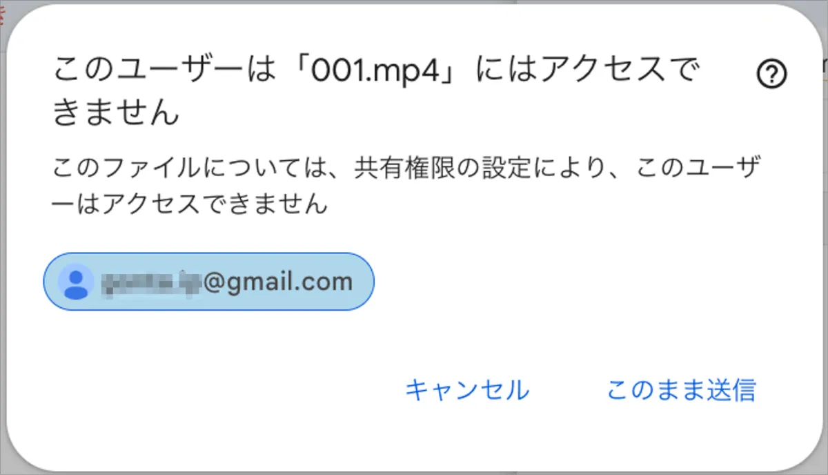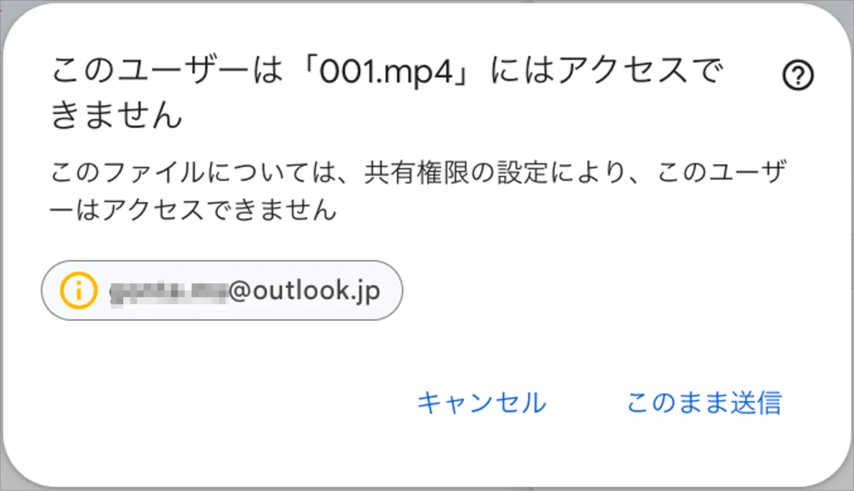 しかし、組織内のアカウントに対してはGoogle Driveのリンクを共有できてしまいます。