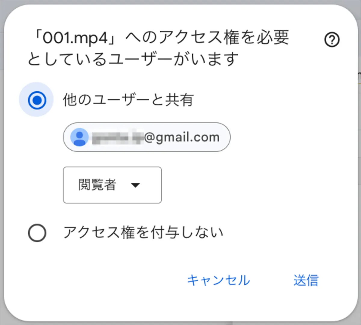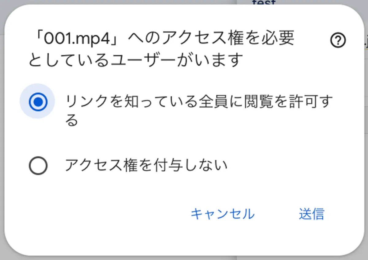 - 2)メールの送信ボタンを選択すると、アップロードされたファイルの共有リンクをどのような公開範囲にするか選択する