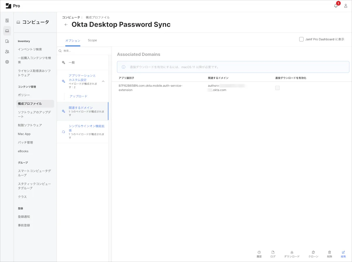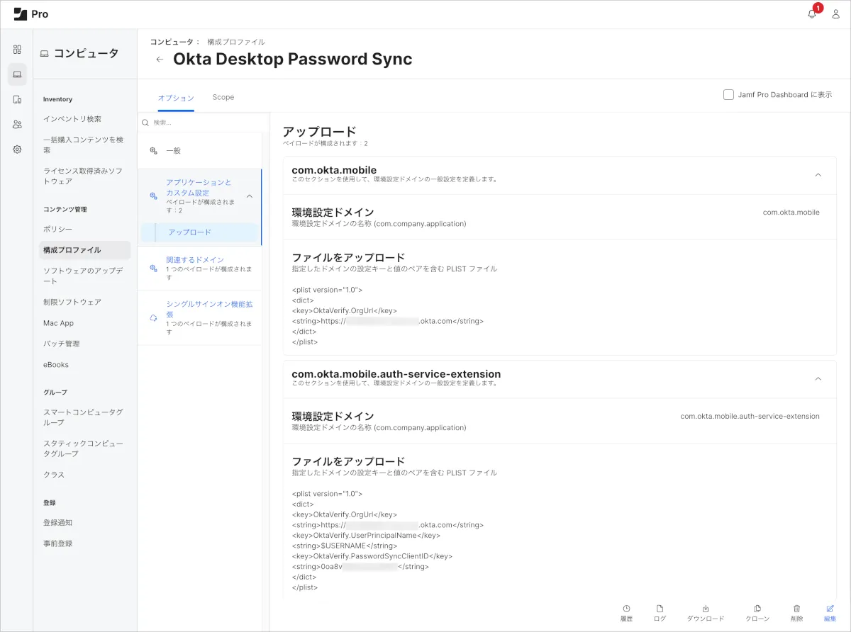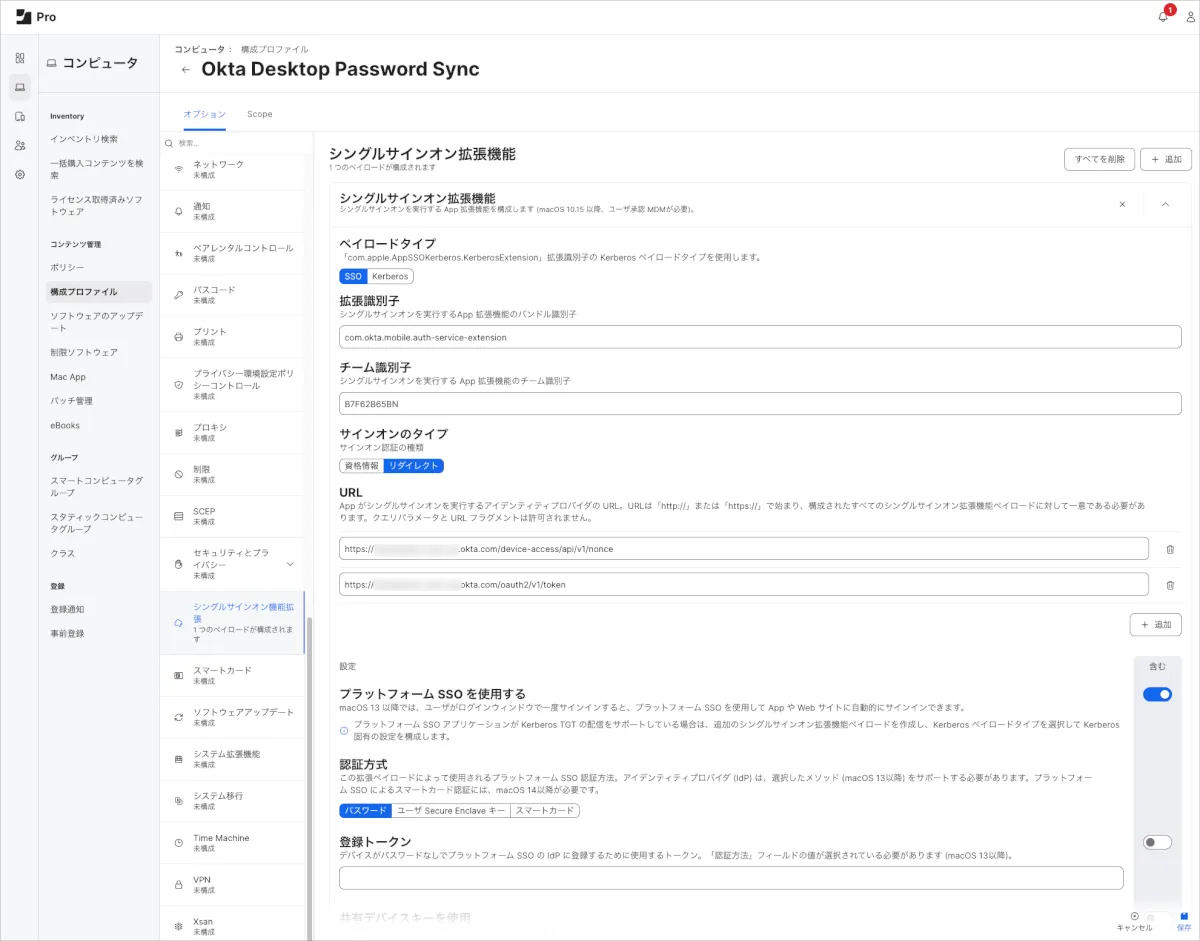 Desktop Password Sync for macOSの挙動を制御するための設定を構成プロファイルとして定義し配布します。