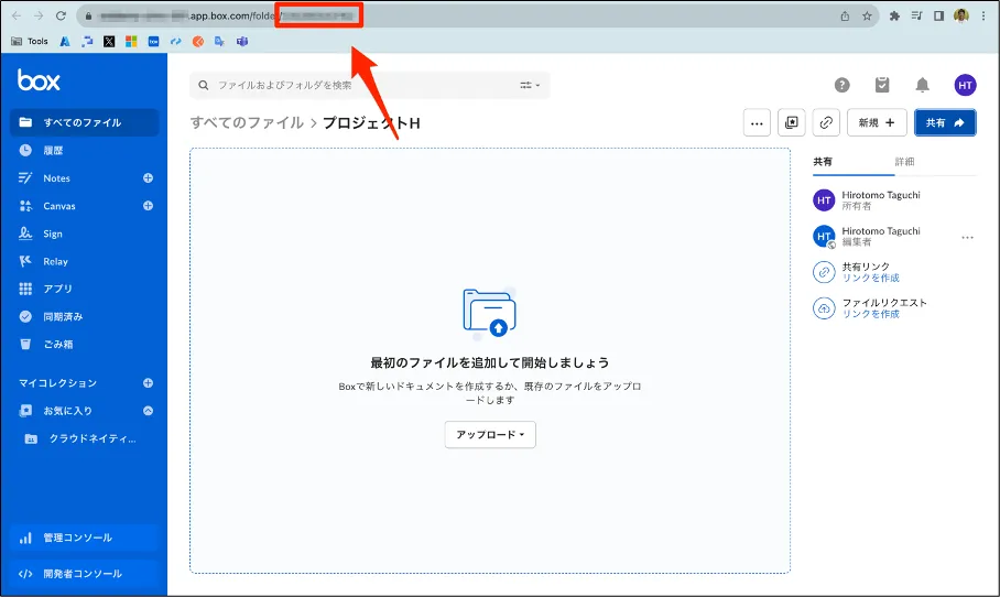 招待したいフォルダのfolder/以下の数字がフォルダIDです。