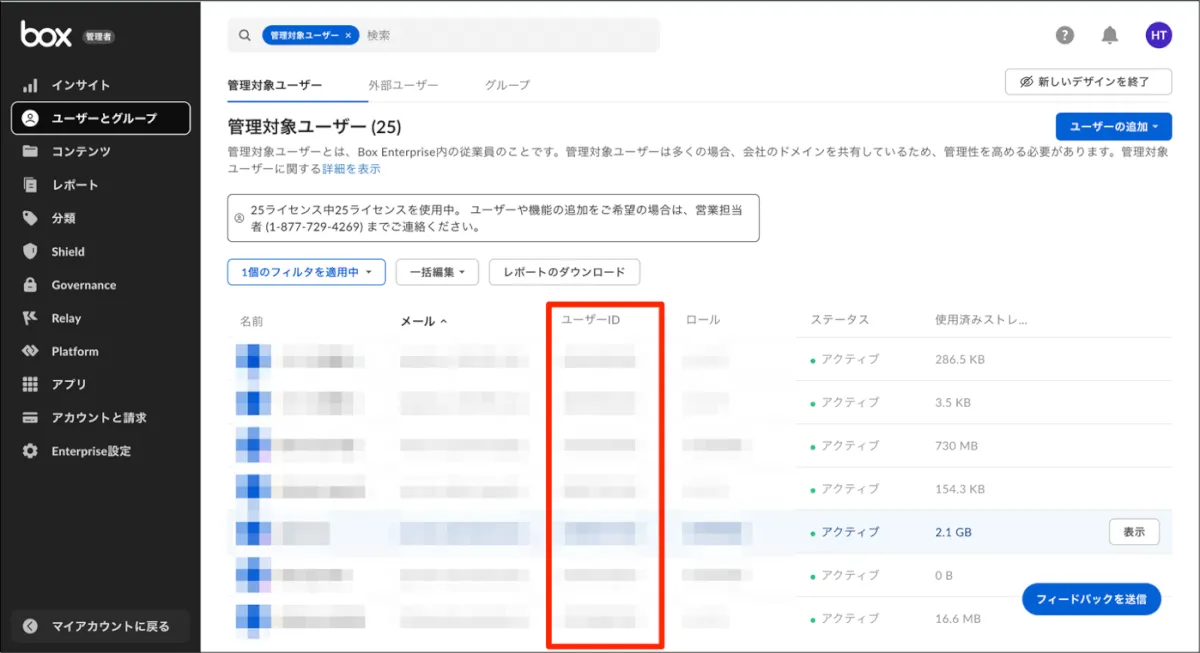 ユーザーIDは管理コンソールの[ユーザーとグループ]で確認することができます。