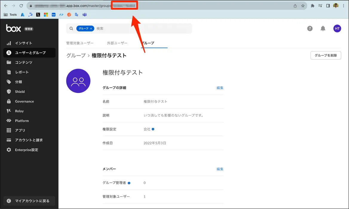 管理コンソールから指定のグループにアクセスし、URLのgroup/以下の数字がグループIDです。