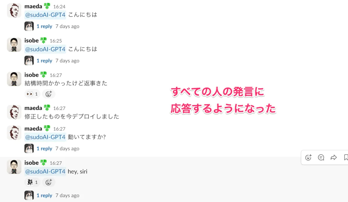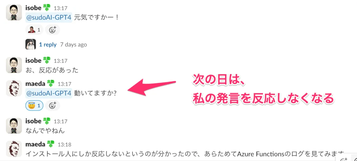 - 社内Slackで運用していたAI Chatbotアプリが特定の人にしか返事をしなくなった