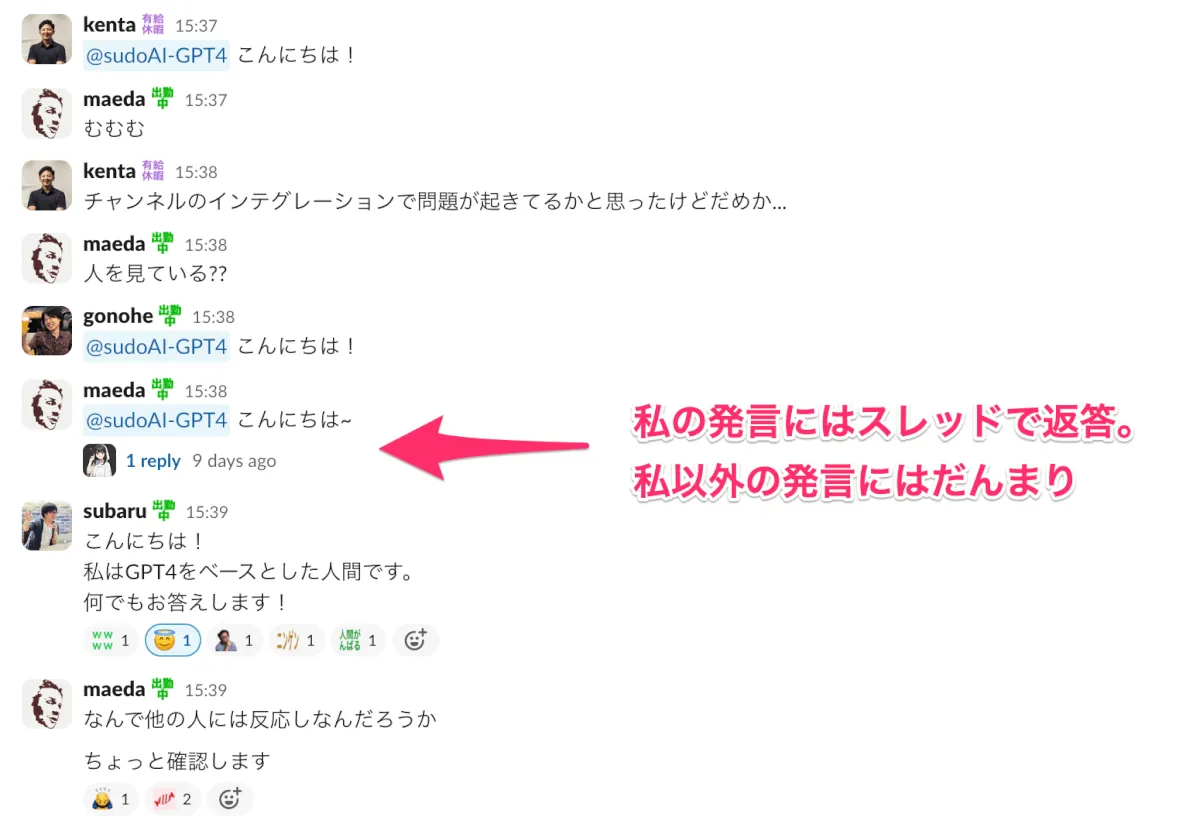 私とAI Chatbotとの会話スレッドに途中から参加してきても無視。