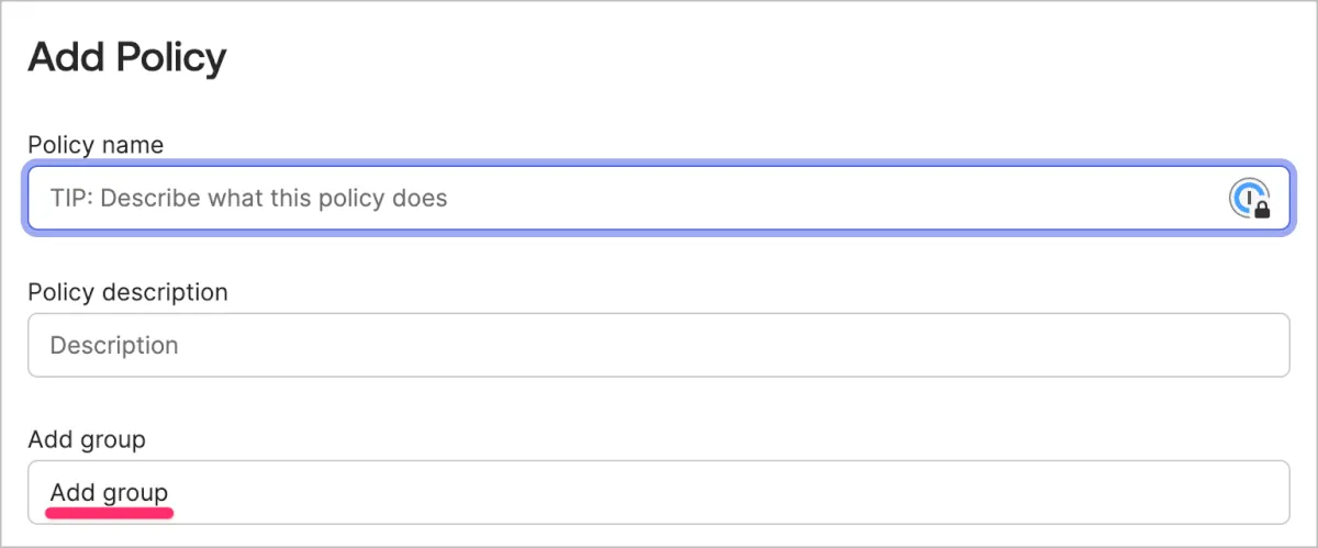 ポリシーを新しく作成する時は以下のようにグループを指定します。