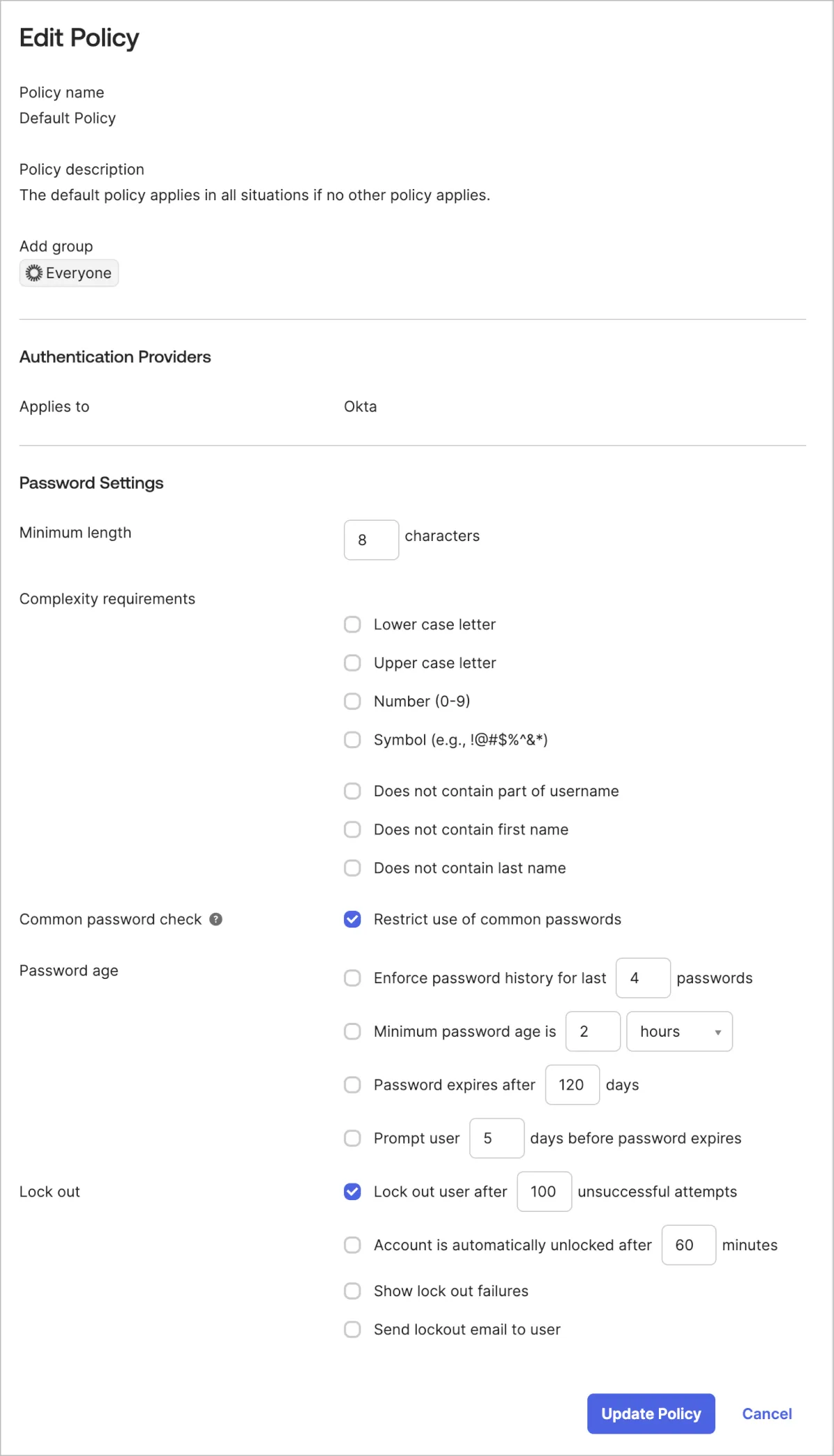 Password Policyはパスワード要件を決めたり、ユーザーが自分自身で行えることを決めることができるという点で馴染み深いポリシーだったと思います。しかし、Oktaではパスワードレスの仕組みがあるため、Password Policyは以前より簡略化できる部分が多くあると思います。