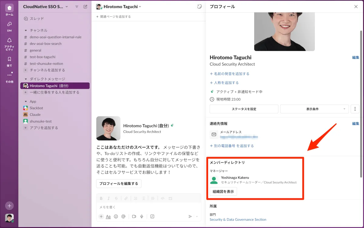 ホーム SaaS Slack Atlas でSlack上に組織図を作りコラボレーションを加速 SaaS 2023.12.25 Slack Atlas でSlack上に組織図を作りコラボレーションを加速 ぐっち slack この記事をシェア X Facebook B! LINE ぐっち 株式会社クラウドネイティブ 関連記事働き方donut(どーなつ)という1on1の文化SaaS【よくあるお問い合わせ】Oktaが突然使えなくなった?プロキシ環境で見落としがちな許可設定SaaS【Okta新機能(早期アクセス)】FIDO2からPasskeysにリブランド!どうかわったのか検証してみたSaaSセキュリオ新機能:フィッシング報告ダッシュボードで組織の状況を可視化するSaaS「AuthnContext」とは?SalesforceのMFA評価プロセスの変更についてSaaS【Okta新機能(早期アクセス)】Policy Insights Dashboardで認証ポリシーを可視化しよう!