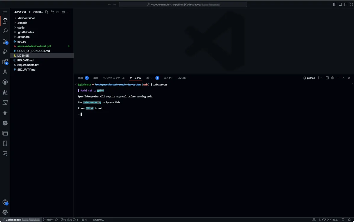 - 2024年2月19日現在Open Interpreter専用環境を用意するならGitHub Codespacesが良い